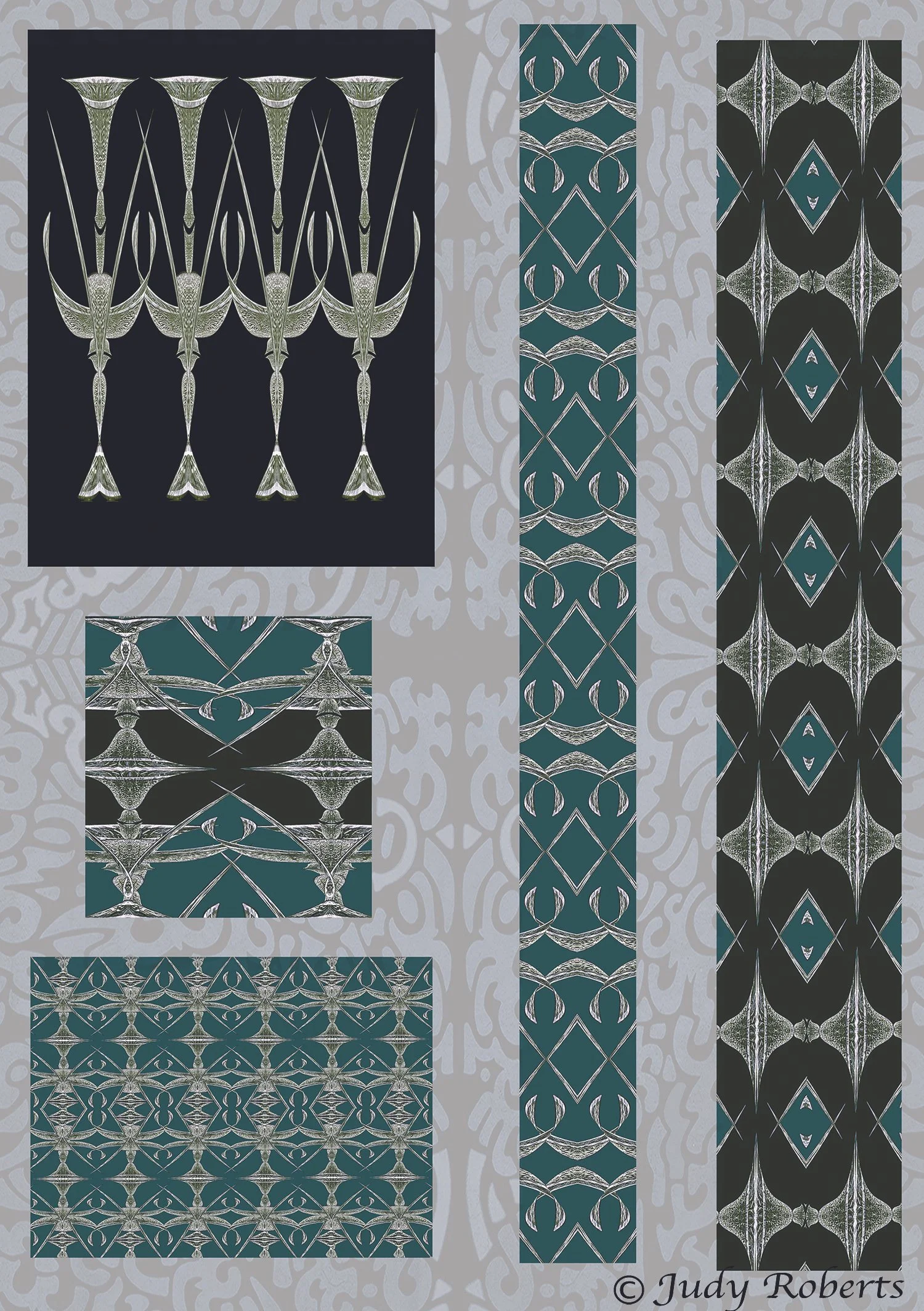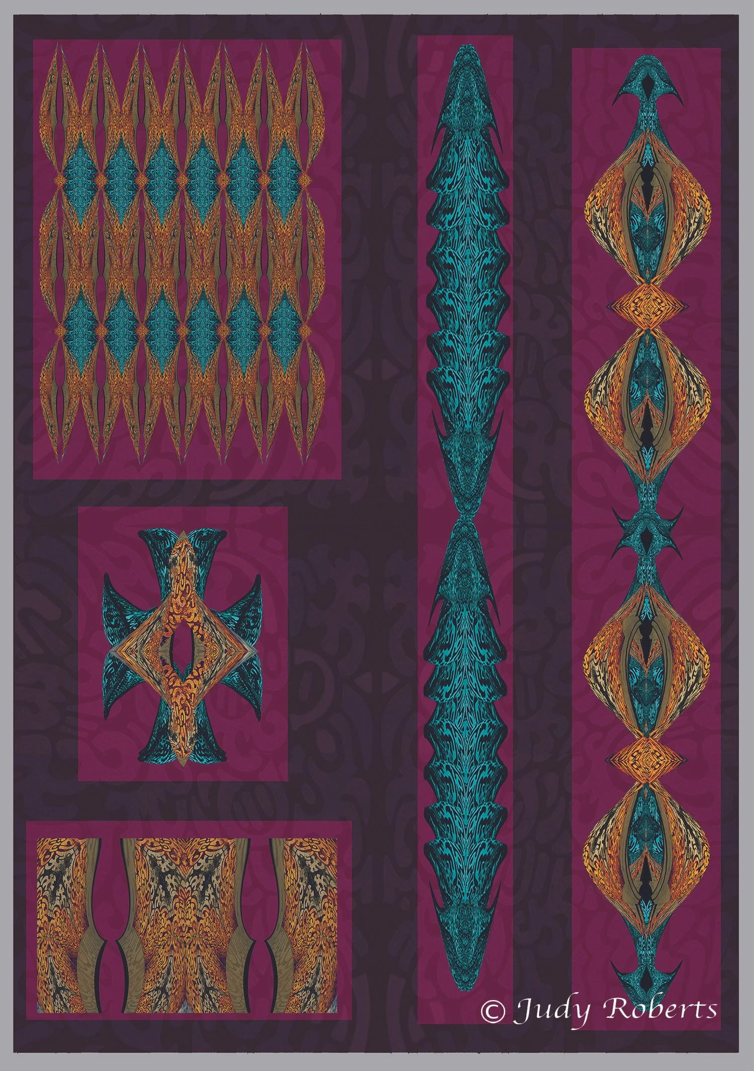 Print Designs Elements drawn together suggesting the endless combination of possible form, colour and design.